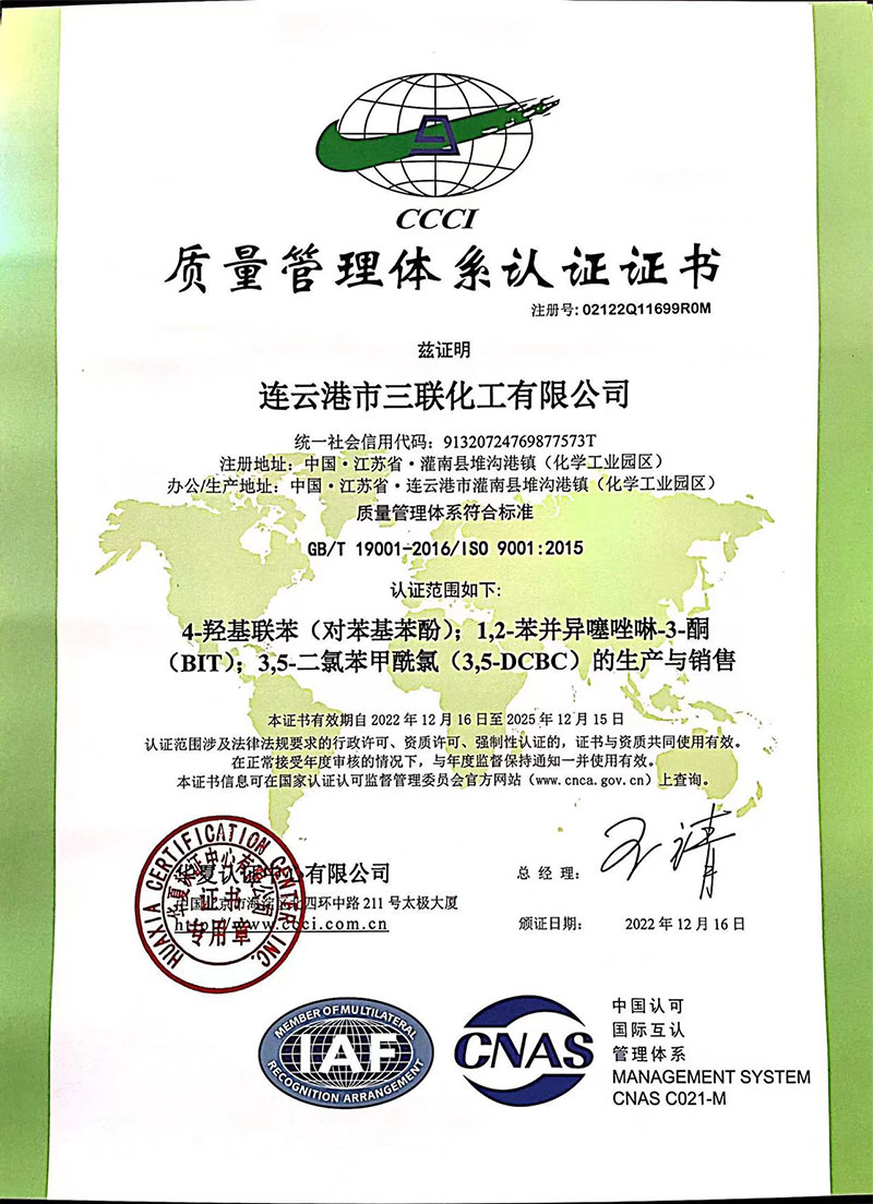 作為ISO9001認(rèn)證企業(yè),我們已經(jīng)建立并實(shí)施了相應(yīng)的質(zhì)量管理體系。產(chǎn)前原料的質(zhì)量檢測、產(chǎn)中半成品的質(zhì)量跟蹤、產(chǎn)后成品的質(zhì)量把關(guān)、 科學(xué)的質(zhì)檢體系切實(shí)服務(wù)于生產(chǎn),確保出廠產(chǎn)品的100%合格率。同時新三聯(lián)化工還建立了標(biāo)準(zhǔn)操作程序和操作考核系統(tǒng),用以確保操作的合格性和穩(wěn)定性。